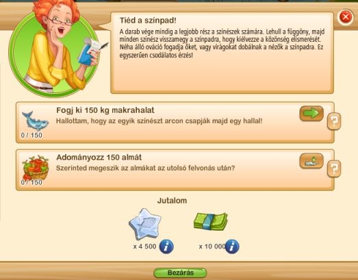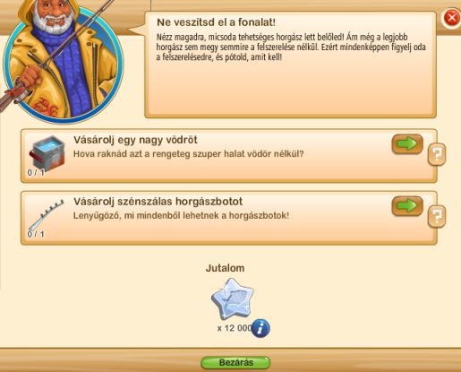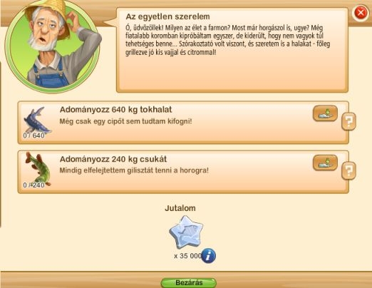 A csúszka végighúzásával, vagy a zöld nyíl segítségével van lehetőség beadni a kért mennyiséget. Ha a feladatot sikeresen teljesítettük, akkor egy darab nád horgászbotot kapunk cserébe.