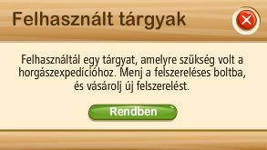 Ha ez az üzenet jelenik meg, kattints a rendben gombra, vásárolj nagyobb vödröt, s folytathatod a horgászást.