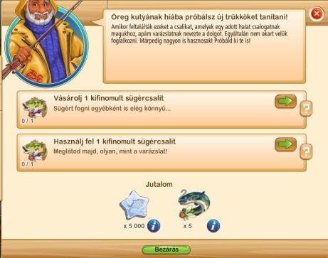 Következő feladat speciális csali vásárlásáról, majd annak elhorgászásáról szól. A csali ára: 13 arany és 3 sügért tudsz vele belehelyezni a vízbe.