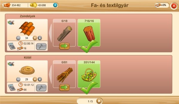 Ha a jobb oldali ikont (fűrész és anyagtekercs) választjuk a körmenüben, akkor attól függ, hogy az épületünk hanyas szinten van, s mely termékek gyártása oldódott fel a következőket készíthetjük:zsindely, kötél, gyanta, szövet, festék, rétegelt lemezek, bútorfa, ásványgyapot, vízcső.