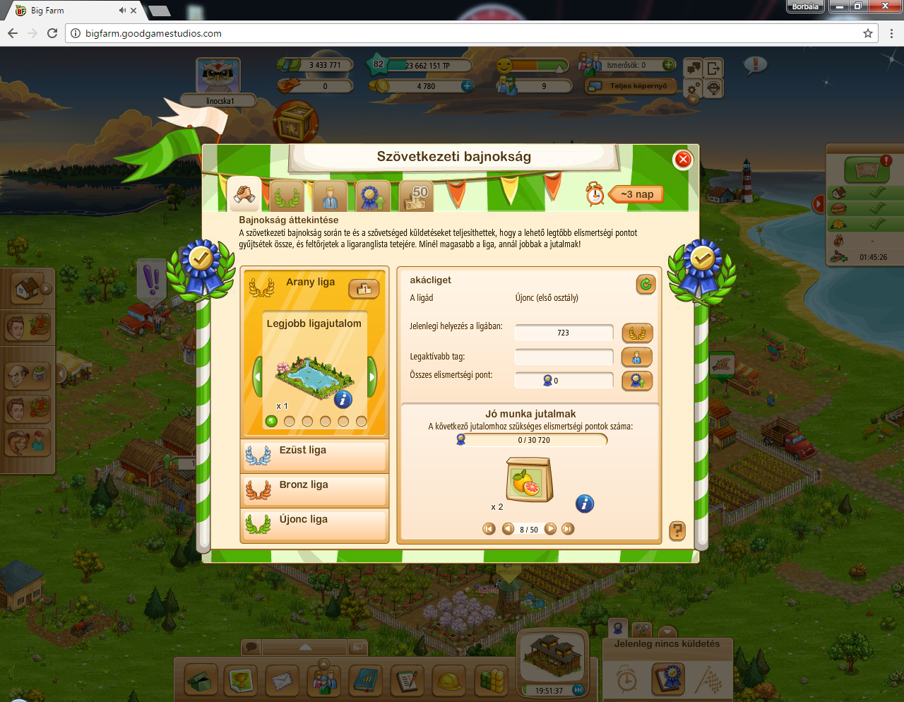 Most fejesztem be a szövetségi bajnokságot. A farmomon én votam az első, de nem kaptam meg a jutalmat.