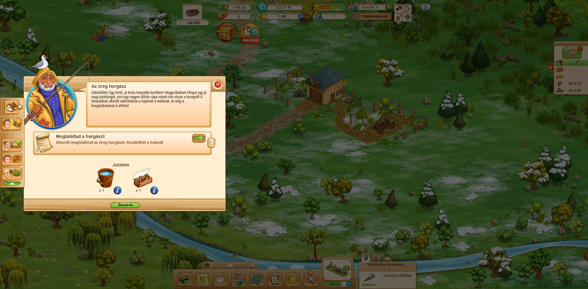Sziasztok! Nekem az a problémám, hogy az első horgászós küldinél már nem jutok tovább. Napok óta itt állok. Meg kell találni a horgászt. A horgász megvan, feljön az ablak azt mondja, hogy megvan és nem történik semmi. Innen hogyan tovább?