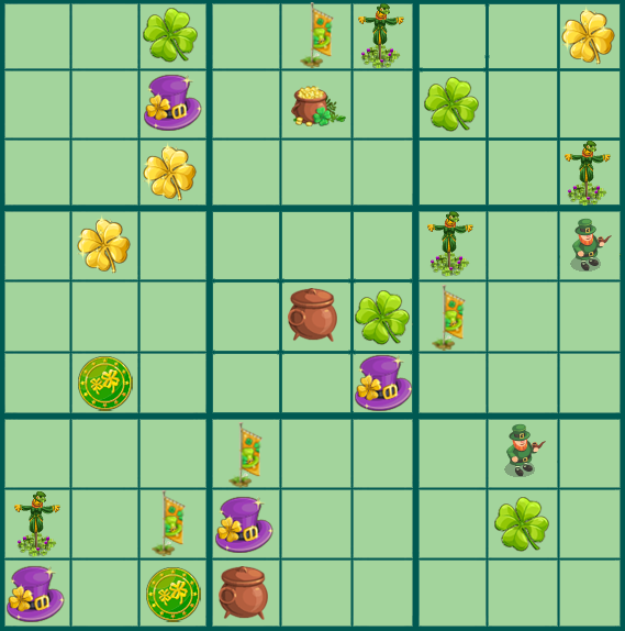 Esetünkben annyit jelent, hogy a kitöltésre a hagyományos sudoku szabályok érvényesek. Azonban a számokat kicseréltük a feladványban képekre....Szt. Patrik témájú képekre.