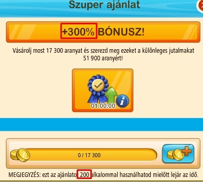 Sosem vettem még, de én úgy értelmezem, hogy amíg kinn van az ajánlat addig max. 200x tudsz venni 17.300 aranyért (tehát összesen 200 x 17.300 arany) ilyen serkentőt és gondolom ilyenkor össze is adódnak az idők, tehát 200 órán keresztül él a serkentőÁdámmaci (HU1) mondta:Sziasztok!