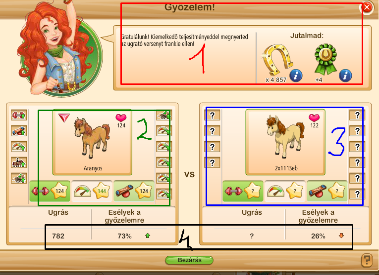 Kék 2: ez a második ló amivel a játék összahasonlítja a mi lovunkat.