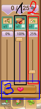 Ennek az a lényege,hogy egymás után adagoljátok neki a raktáron lévő dolgokat.Ahogy lejár az egyik,már adhatjátok neki a következőt.A lényeg,hogy a szeretetmérőt teljesen feltöltsétek.A szivecske feltöltése a végcél.