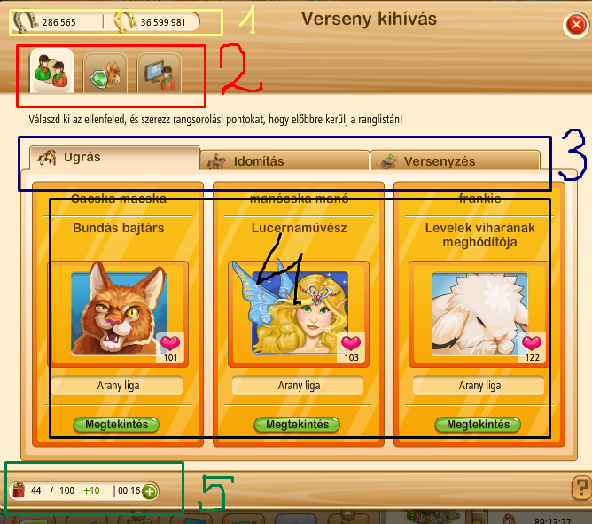Piros 3.Ez az edzés belépő gombja.Ha erre kattintotok akkor itt lehet elkezdeni majd a lovak edzését.