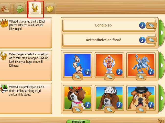Aztán,ha már nagy szintű a ló és félő,hogy emiatt nem tudjuk betenni a lovirétre,akkor onnantól a kis ikont ajánlom.Ez is ugyanúgy növeli mind a 3 versenybéli pontszámot.