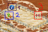 Fekete 1: információs gomb.Ez megmutatja,hogy hanyas szintű a pálya,1 körben min-max hány patkóval edzheted a lovad,hogy minden edzés 4 órán át tart és mennyi "bónusz" betanítási pontot kapsz ajándékba minden edzés alkalmával.