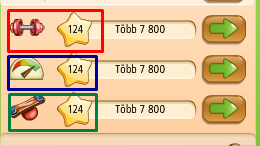 - erő (piros súlyzó).Mellette van egy csillag,az a betanítási szint.A mellette lévő sáv benne 1 számmal pedig azt mutatja,hogy hány betanítási pont kell még a következő betanítási szinthez.