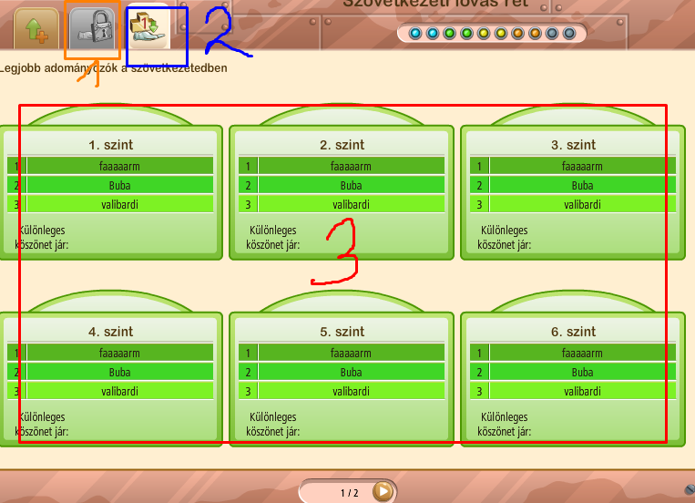 Kék 2.Itt jelzi,hogy kapott e új tulajdonságot.Ezt pipával jelzi.