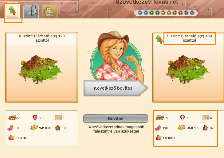 Kék 2: fejlesztési gomb: Erre kattintva azt látjátok (nincs kép,mert nálam maxon van),hogy a fejlesztéshez
