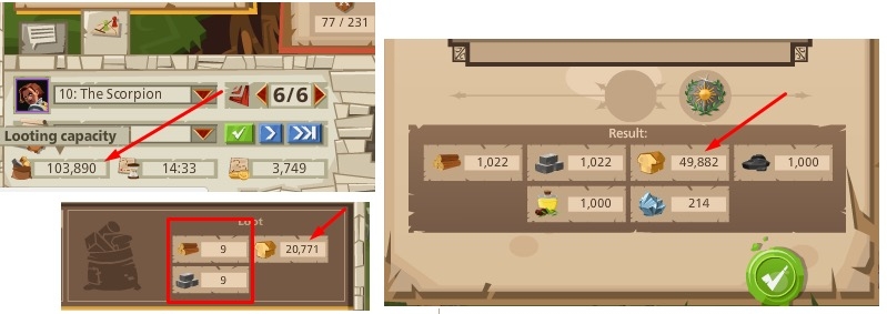 Nosnost útoku 90084, a odvezl celkem 130621 surovin, Velitel cizák, možná nájezdník, síně bez rabování, bez šutrů na rabování.
