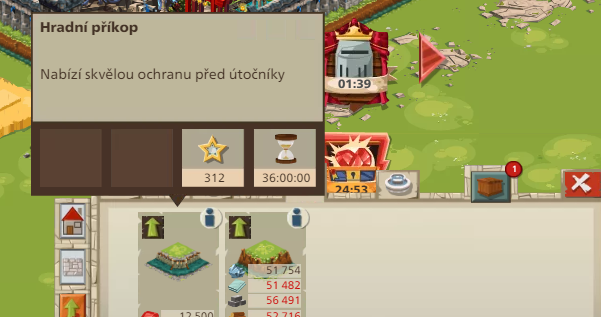 co to meleš o hradním příkopu?:D,co to hraju 6 let je pouze vodní a to druhé co máš v nabídce cimbuří je taky vodníDr.Loser (CZ1) napsal(a):kesidy 903 (CZ1) napsal(a):Jsou dva typy příkopu, vodní a hradní, vodní je za suroviny a hradní za rubíny. Druhá (nejvyšší) úroveň vodního příkopu má stejnou obranu jako první úroveň hradního příkopu, takže druhá úroveň hradního je nejlepší. Jenže se nedá postavit, když už na té základně je příkop vodní.Dr.Loser (CZ1) napsal(a):Je to tedy trochu off-topic, ale od kdy nelze vodní příkop přímo pozvednout na hradní příkop bez nutnosti ho zbourat?!? Já to tedy v nabídce výstavby mám.kesidy 903 (CZ1) napsal(a):Co třeba kdyby šel zbourat vodní příkop? Když obsadím základnu, která ho má, tak místo toho nemůžu postavit hradní příkop, takže má o dost slabší obranu...