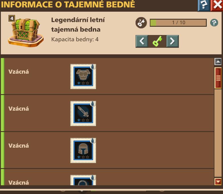 To číslo vľavo hore na bedni ukazuje kolko dostaneš odmien z danej bedne, kľuč ale funguje len na jednu z tých odmien čo znamená že ak použiješ zelený kľúč na bedňu ktorá ti dá 4 dropy tak jeden z nich bude garantovaný zelený a lepší.radah (CZ1) napsal(a):opravdu si nerad stěžuji ,ale neměl jsem za použití zeleného klíče dostat jen reliktní vybavení ?