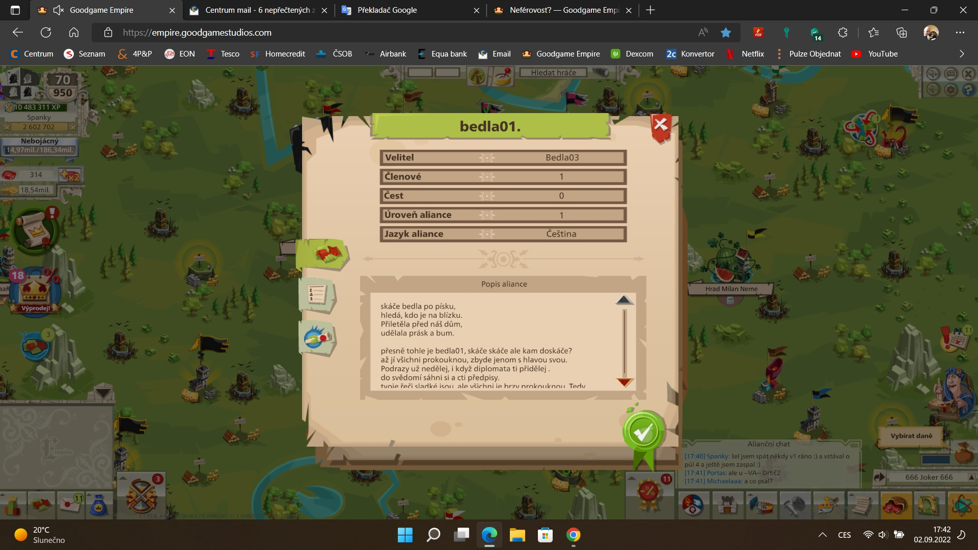 Aliance VA se před nějakou dobou rozpadla a to na základě intrik minimálně jednoho hráče. Pár lidí vč. mé osoby odešlo před Válkou a pár během ní při rozpadu VA. Hlavním problémem byl hráč choze. Já po nějakém čase stvořil novou alianci Řád cti (v počátku CONSIDERING). Vyjednal jsem mír, chtěl jsem hrát na pohodu ale to nebylo dopřáno! Bohužel určitý nešvar se opět přenesl i sem, zjevně v podobě dalšího hráče. Tento začal napadat mou hráčku viz. screeny. Zajímavé na oné skutečnosti je to, že dotyčný komunikuje pouze se mnou i když má jistou averzi proti hráčce? Jeho komunikace mi prozradila jednu zásadní věc a to tu, že byl i zde v Nové alianci a velmi reálně i ve VA jako takové. Skrývá se za multikonty, místo toho aby vylezl a jednal. Jelikož je to tak velký ubožák, že není schopen si to vyříkat normálně a chová se jak se chová, tak nezbývalo než prostě odejít do pryč! Komu má člověk důvěřovat? Byli jediný dva hráči, kterým jsem mohl věřit na milion procent - Primm a dotčená Bedla01 o kterou se otírá! Na mapě mnoho ubohých jedinců, ale tento jako jedinec předčí všechny ostatní!!!!