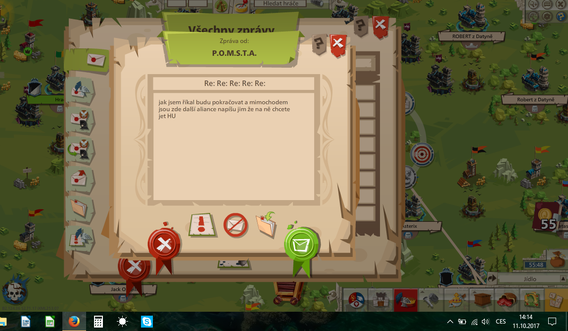 Tak promiň. Já zapomněl, že všechno víš. A reagovat budu, pokud uznám za vhodné. Od toho tu je prostor. Jinak ti děkuji za radu.Rakode (CZ1) napsal(a):Děláš si srandu? Mně nepřipadá normální vyrazit na HU pouze na základě nějaké info, že mi ve zprávě od lvl 20 přijde varování. Naštěstí, viz reakce a osobní zprávy, jiní bossové poslali dotaz... nikdo tady nebrečí, ale upozorňuje. pokud myslíš, že ustát cca 150 útoků od 3 aliancí není o koordinaci, raději nereaguj. Od toho je fórum, aby se dala info, pokud do hry vleze nějaký multiúčet a prudí, stejný cvok vyvolá potíže i jinde.Lien Rag (CZ1) napsal(a):Naučte se s těmito druhy protivníků bojovat a neplačte. Tady vám sice otřeme slzy, vyjádříme účast, ale vybojovat si svoje musíte sami. Za ručičku vás nikdo nepovede. Podobní hráči jsou snadno porazitelní. Od vás to předpokládá soudržnost a koordinaci. Pak máte šanci.