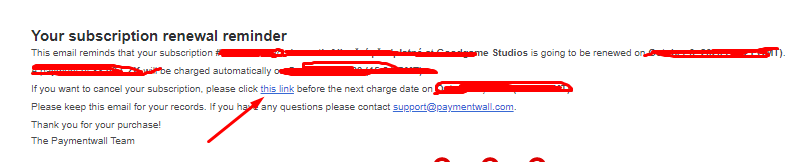 Každý měsíc bys měl mít v poště mail od Paymentwall Support , jde o potvrzení předplatného a zároveň je jeho součástí link na zrušení předplatného.UltimateDestiny (CZ1) napsal(a):Dobrý večer , koupil sem si předplatné kreditkou,ale bylo tam že mi to bude automaticky strhávat každý měsíc pokud to nezruším.Proto em napsal e-mail na podporu o zrušení automatického obnovení toho předplatného,ale doted mi nikdo neodpověděl že je vše vyřízený.
