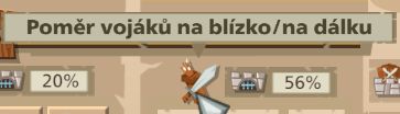 Není vhodné bránit 100% vojáky na blízko, nebo dálku.