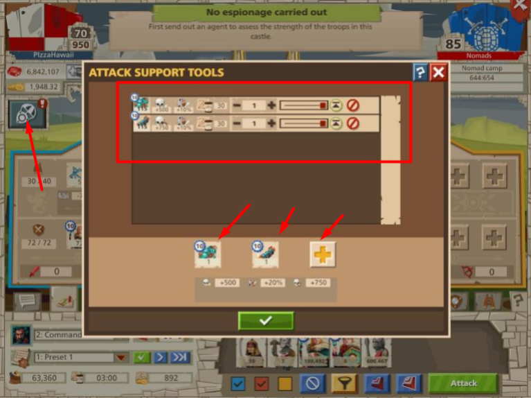 V útoku nebo obraně tedy můžete podpůrnými nástroji zaplnit maximálně 3 sloty.
