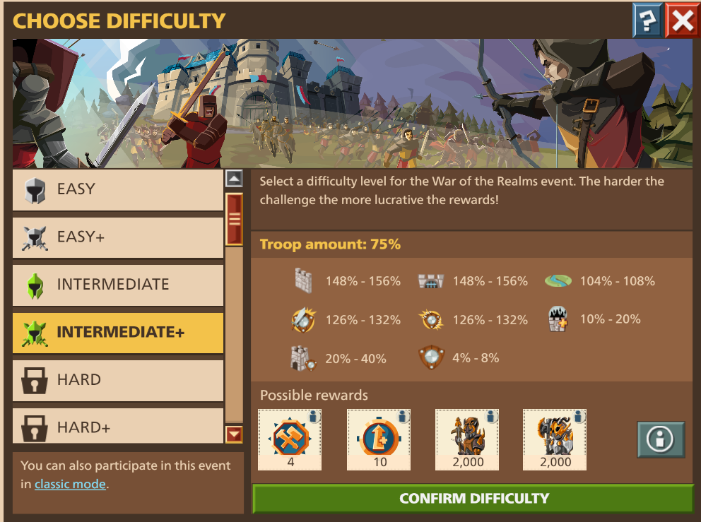 Na začátku hry je třeba si uvědomit jakou obtížnost chcete hrát a pokud vůbec chcete hrát novou verzi. Vždy máte možnost volby. Ale jakmile si jednou zvolíte svoji obtížnost, už ji nemůžete během akce znovu změnit. Nová verze je skutečně velmi pěkně udělaná a jsou v ní obsaženy nové příjemné odměny (sceatty, tokeny, BTH materiál), ale k tomu abyste toho dosáhli bude třeba nahrát na vyšších úrovních skutečně hodně bodů, pokud jste tedy začátečník, je lepší si nejdříve vyzkoušet jednu z nižších obtížností.