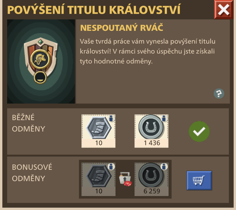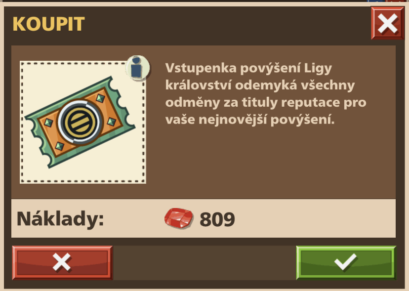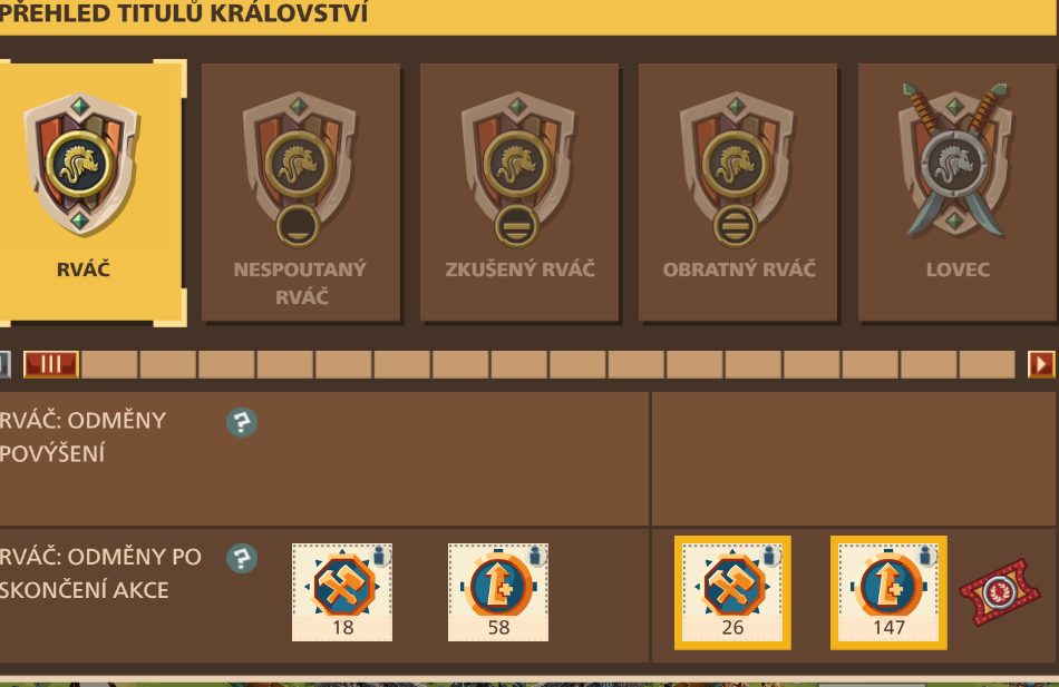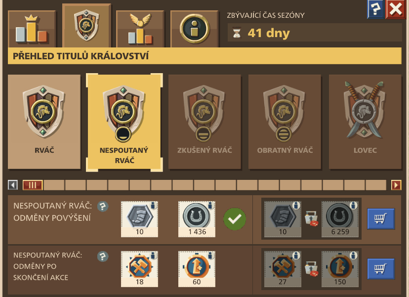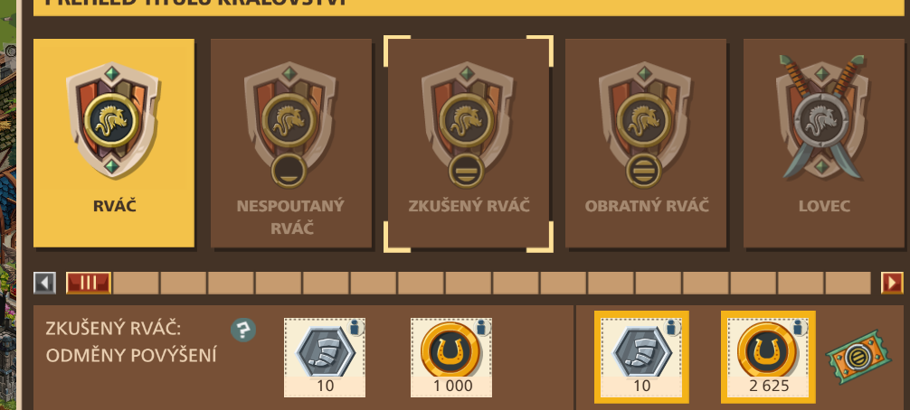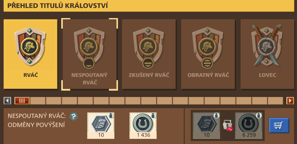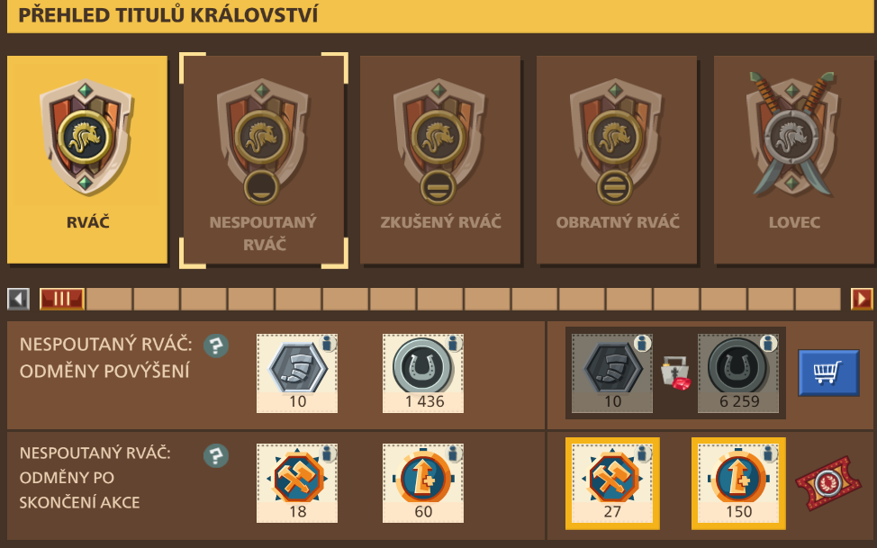 Cena Vstupenky povýšení je celou dobu stejná, koupit si ji můžete pro každý titul zvlášť, klidně ihned - např. já ji tedy koupila pro titul Zkušený rváč, a tedy při jeho dosažení dostanu extra odměny, nicméně pro předchozí titul Nespoutaný rváč jsem ji nekoupila, pro extra odměny by tedy bylo třeba zakoupit ji zvlášť i pro tento titul.Screenshoty: