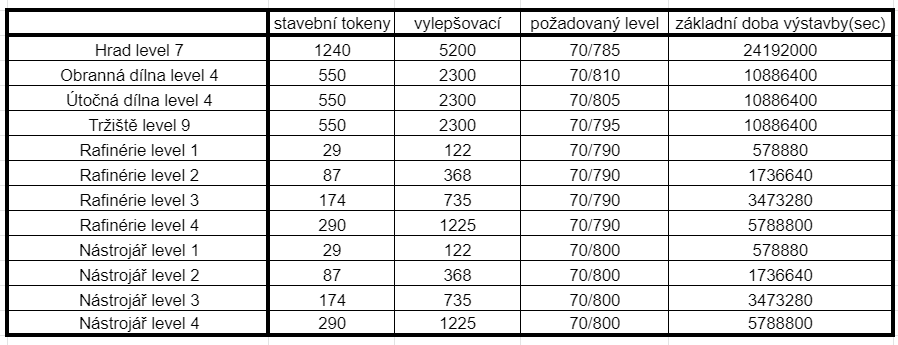 s radostí vám představuji tabulku, ve které najdete ceny (většiny) budov za rubíny a tokeny