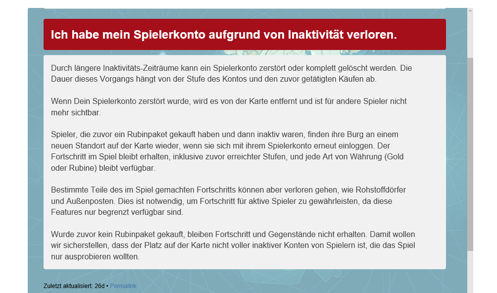 Offiziell ist diese Wiki Seite aber nicht ist von freiwilligen Betreut so wie ich das verstanden habe und erstmal nichts von GGE direktWolfszahnschmie (DE1) schrieb:Auf der Offiziellen Wiki Seite ist sogar von 2,5 Monaten die Rede! http://de.goodgame-empire.wikia.com/wiki/Ruine