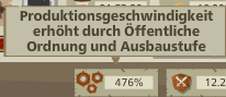 Nun du hattest vorher vermutlich schon eine Produktionsgeschwindigkeit von über 100% aufgrund deiner öffentlichen Ordnung und der Ausbaustufe, kannst du übrigens im Produktionsfenster unten sehen.