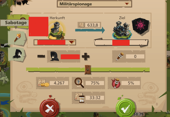 Sobald du darauf klickst öffnet sich ein Fenster und du bist bei dem "Spionage"-Tab runter. Um zum "Sabotieren"-Tab zu kommen