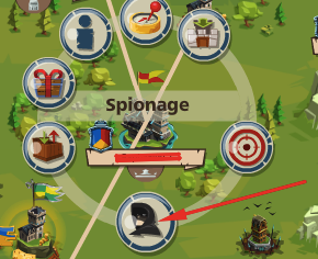 Um überhaupt sabotieren zu können brauchst du zu aller erst Spione (sprich ein Wirtshaus). Sobald du diese hast, kannst du auf eine beliebige Burg auf der Karte klicken (egal ob Eis, Sand, Wüste, Feuer, Grün) und dort klickst du dann auf die "Spionage"-Funktion: