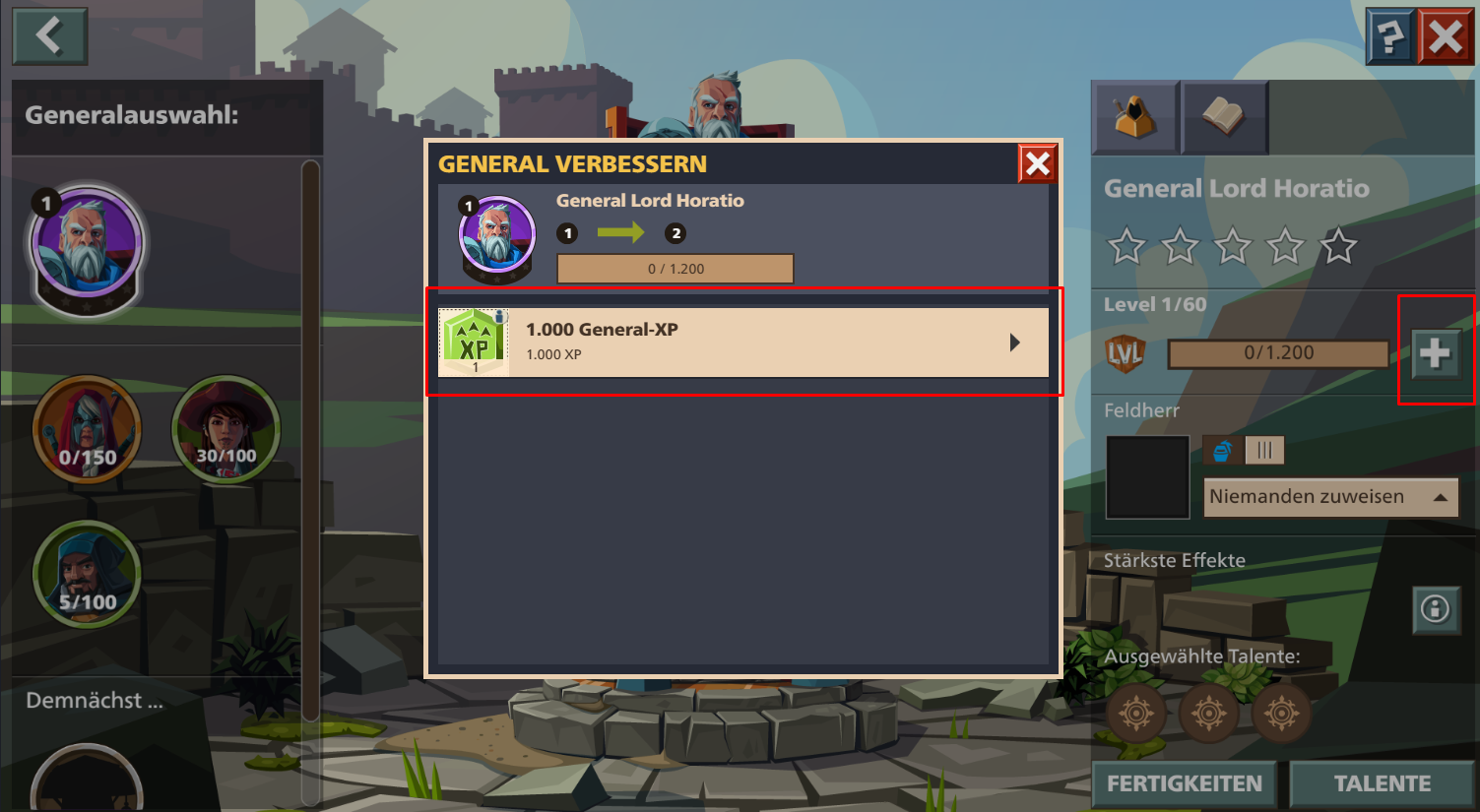 so kannst du diese XP in der Generalsübersicht einsetzen: