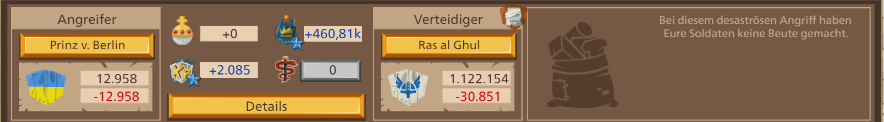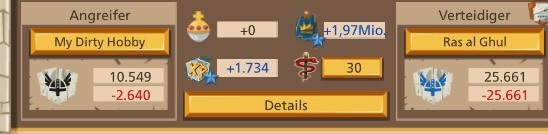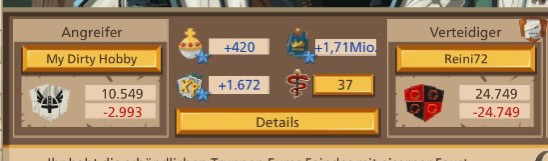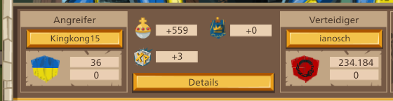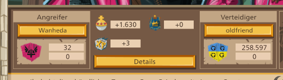 So, damit sind nun insgesamt 10 Allianzen raus aus dem Krieg^^ Also läuft super dafür das 2 CLANS gegen 2 Allis "kämpfen"