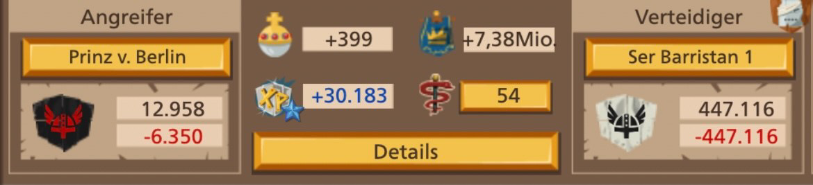 So, damit sind nun insgesamt 10 Allianzen raus aus dem Krieg^^ Also läuft super dafür das 2 CLANS gegen 2 Allis "kämpfen"
