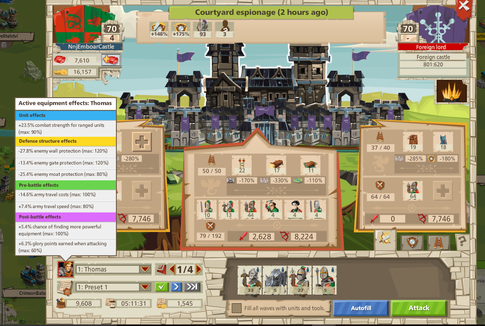Oh, and I moved 26 Vet Crossbowmen to an op and sent 26 Vet Two-Handed Swordsmen to my main in exchange, would that help?Ninja Emboar (US1) said:What if my commander now has like 60% wall and something gate (gate doesn't matter here, no defenders @ front or left flank), and I had 22 War Horns on the front so my melee troops will do better in the courtyard against the ranged?