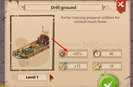 can someone please explin the figures on troop recruitment ? what is the starting point ? ,i had a level 5 barracks level 2 drill ground and recruitment speed for a slot of 5 imp marks was 7 mins 40 secs on an aristo feast, upgrade drill ground to level 3 cost 17.5 k rubies which increases speed from 50 % to 75 % time drops to 7 min 10 seconds which is not a 25 % differance when i went to school which granted was a long time ago,i then put a level 10 drill ground build item which is spose to increase the speed by 110 % speed then drops to 7 mins 05 secs so for 17'5 k rubies and all the speacial res needed to make the build itam you save 35 seconds on a slot,think that is a terrible return for your buck,what i want to no is what is the start and what are the % being taken off ?