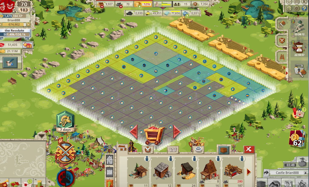 What's the best castle set-up to use up all the allotted space without any gaps? My current one has a bunch of spots where no building can fit.(Just in general, for a level 70 player)