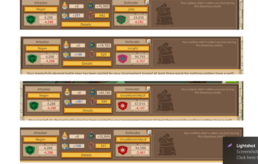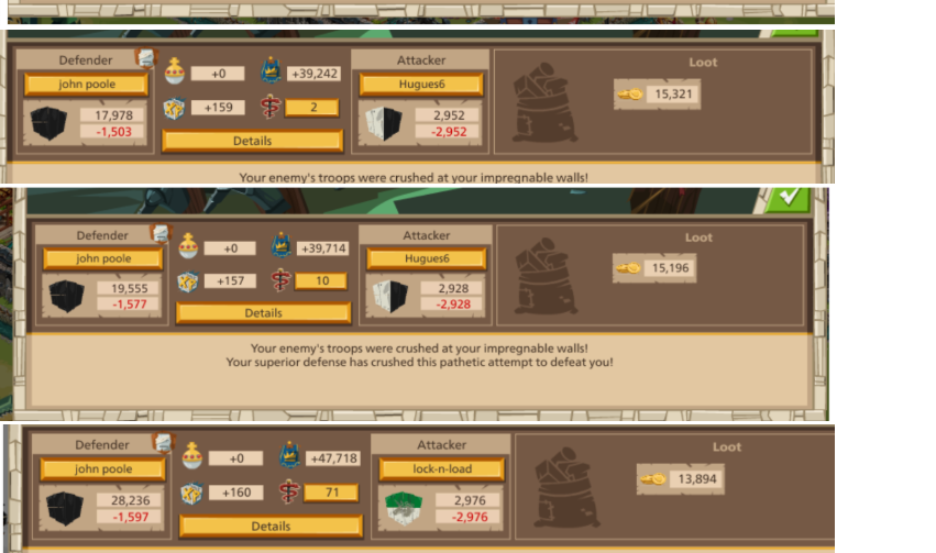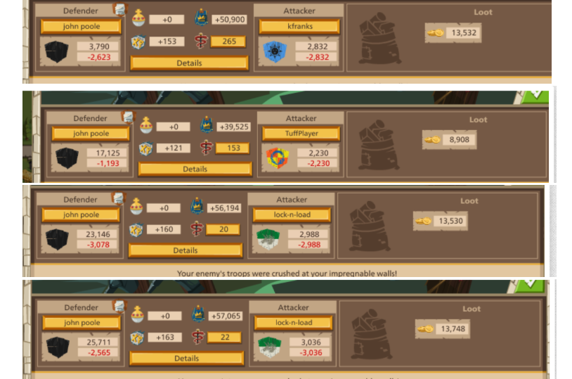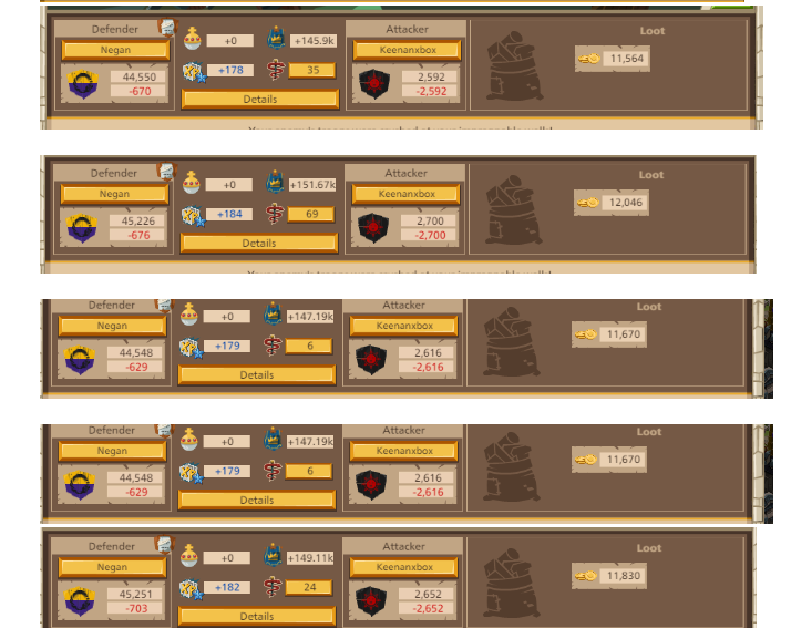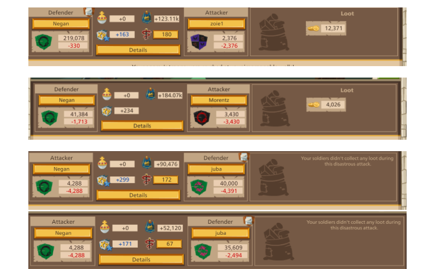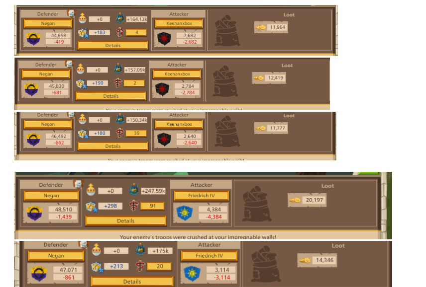 Other than some hits on Keenan, Nimrod and GB11, all your reports are on people in retirement subs.amr5 (US1) said:yes u asked all server to mass negan and u all failed to take one honor from her or make one fireMorentz (US1) said:The game has changed a lot recently, mainly for the detriment of everyone. Any player willing to keep wasting thousands of $$$, can just keep buying defence.