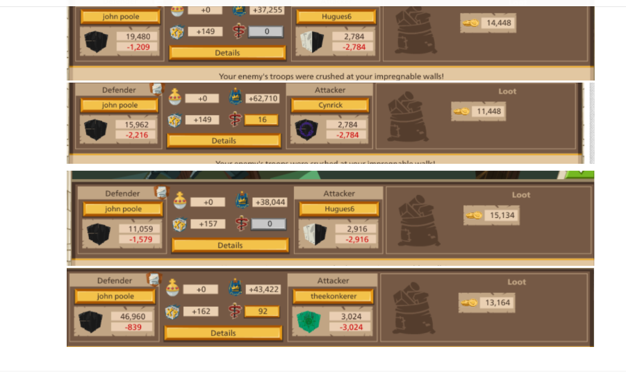 The purist PVP alliance on the server? That literally only hits retirement alliances.Redrick (US1) said:Morentz (alt King) Its called fire/loot cast .. I Play when I want.. Not when someone Hits.. So U brag about wiping ME?? haha REALLY, 1 6 hr window U got my troops when yes I was suspended for Being to Good Lookin hahaha. I have taken Out just Under 400k of Misc troops in 4 days.. Misc (Morentz/Wipes) lol wipes my coin troops I recruit at My Fire/ Loot casts and U claim to be wiping Redrick?? 6 Players and Misc cant do anything But get DESTROYED when they send Full Hits or.. haha Like Morry says.. they wipe a fire/ loot cast. U Get Nothing from Us and we take 100k + Minimum Misc troops Daily. who ever is winning the troop LOse ratios/ Troop Count is who Is winning.. that number is comically in our favor 10x over. Tess PM Us agian and we will listen to your peace request. This alliance will Never Go No Hit/ or have pacts that extend to PVP.. so dont waste time on that thought.. OUR alliance is the purist PVP alliance ON this server Hands DOWN. The server awaits Morrys/ alts cry/ spin.. 90% of Misc this does NOT pertain to u.. just the few/ alts in Misc that continues the banishment/harassment/ stalking Of 1 member here.. Let it Go.. GB my Love hahaha