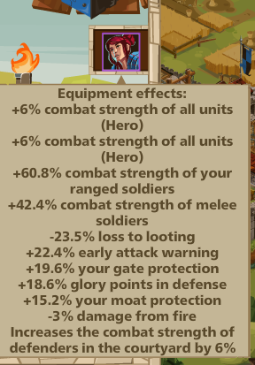 thanks, also you have a cool picture in your signature can only moderators get it?For your level I think that is an ok cast considering but there is room for improvement such as your courtyard bonus, once you go over level 50 it's essential that you really concentrate on casts and making sure that they are always improving in all castles but I would suggest concentrating on one main cast and work off that as you can defend online attacks better with one solid cast. As Lucas has said above, ranged and melee strength are the core stats which you want to focus on in terms of looted equipment but courtyard strength is most important after those and having a courtyard hero is also best suited for offline defense. Try to complete events like kala for easy cast's and comm's as these are usually decent.