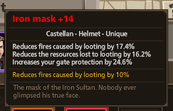 As carol said to loot for the pieces needed to create the fire castas you do need to create one to begin with. like any amour pieces with fire reduction on it. fire reduction is more vital as it means you will spend less resources putting them out and you wont have to waste your rubies. the legendary armour of the firefighter is the best for fire reduction as it has higher % on it. for loot reduction you need to look for the legendary armour of the concealed. Having a fire casta that combines both to the max despite what jjjsk tells you is not achievable. you either have one dedicated to fire reduction or one for loot reduction. you can combine them but one statistic is going to be more then the other depending on how many fire % and loot reductions you have.