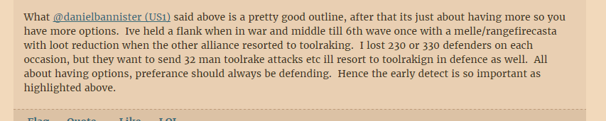 If you listen to a member sugesting you toolrake with 10k defence in the keep and not try to defend properly, that is just wowzers.... really really is amazing that you are saying that out aloud, typing it even im sorry... Its pure crazy.