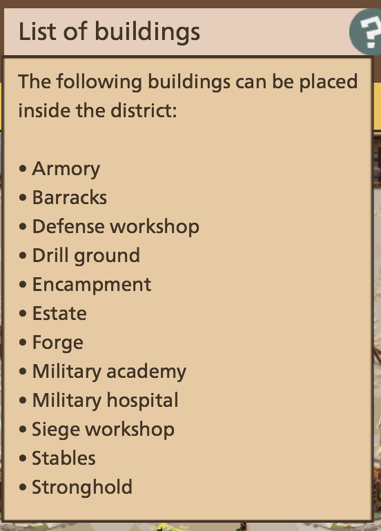 @Valar Morghulis (TR1) What buildings can fit into the military district?