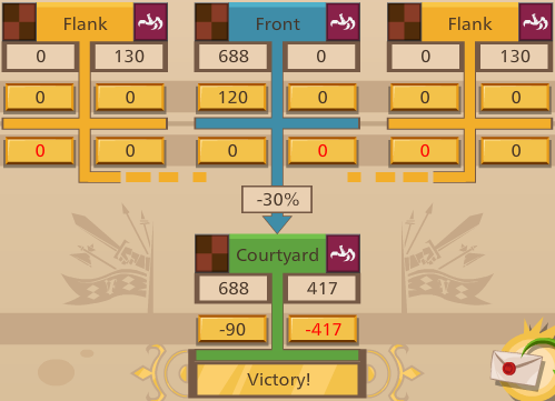 3. ofc ur rite again, bout the -30%, bc i wasnt aware that taking only 1 flank would rest 30%, only knew of the bonus at CY bc of the stats on equip n what few other players mentioned me bout, now im more aware of the whole taking flanks importance when adding bonuses at courtyard