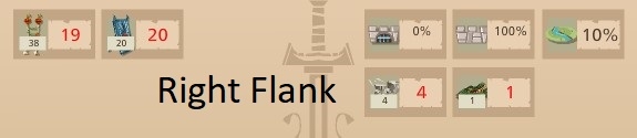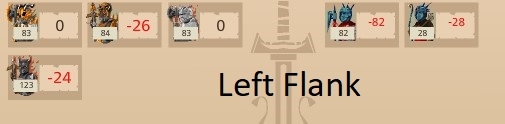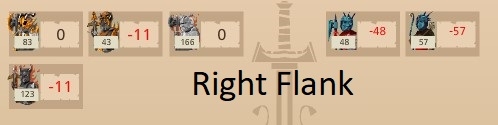 Right Flank 86 Melee 56 Range / Front 152 Melee 156 Range / Left Flank 30 Melee 114 Range,