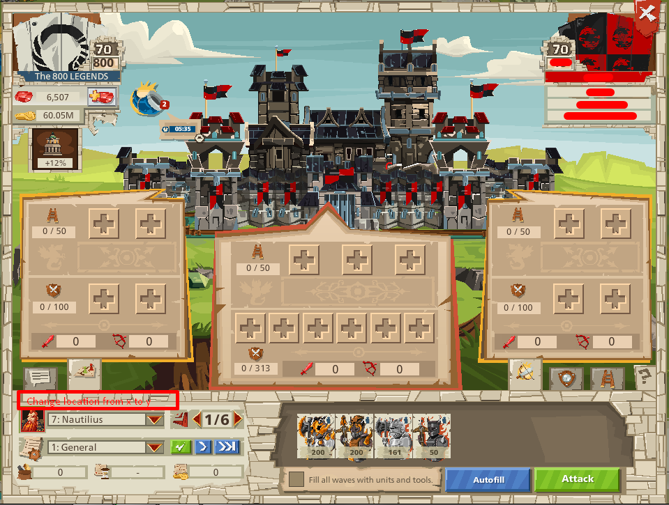 Attack menu - giving the player the ability to change location to another location without leaving the attack menu(while player is in the attack menu, to change locations from a outpost to another or main castle *Possible only in green*) + Same for transfering tools/troops