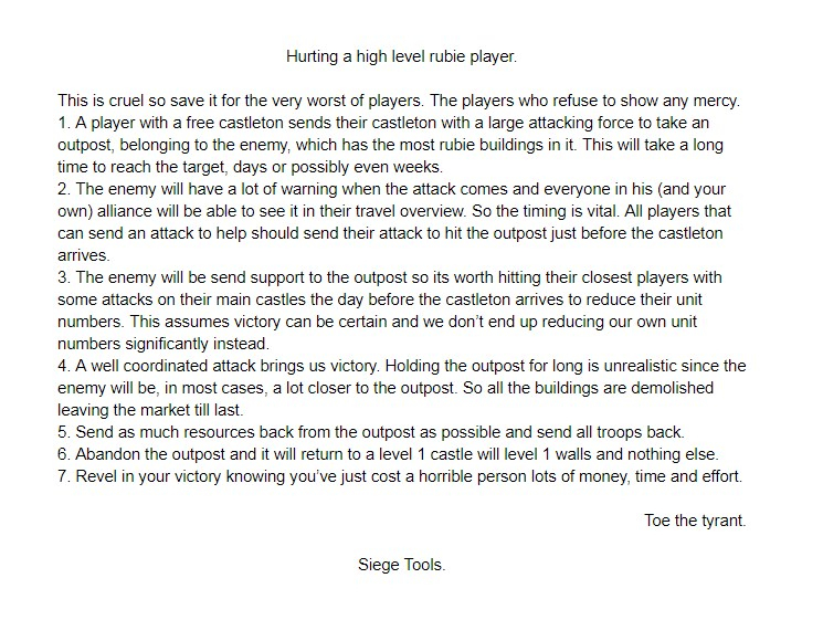 9. The same tactics suits for metropolis and capital, you just need lvl 35-ish castle for that and half a million def (because for metros and capitals castelan is naked, you can't put items on it and then you rely of the principle "the more def you have the less you lose").