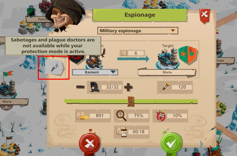 Open the espionage window of whoevers castle you want to sabo, theres a tab on the left with a torch. That's for sabotaging. @petegunn17 (US1)