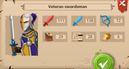 As we can see Veteran Swordsmen have a ranged defensive strength of 72. In defence you can go full melee on the wall with limes to defend against a well tooled ranged attack. The issue is that melee troops have a low ranged defence stat compared to ranged troops.