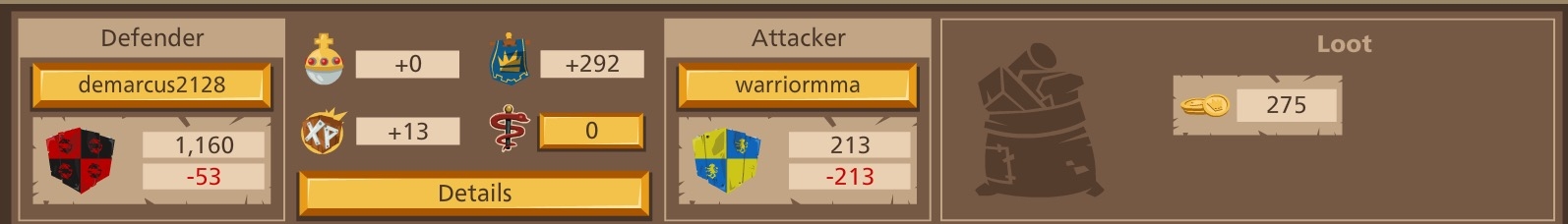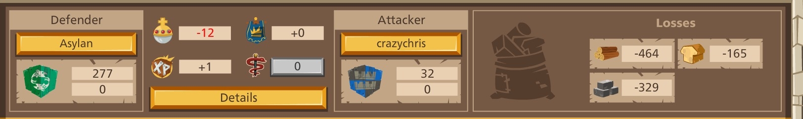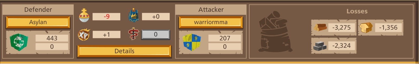 At that attack, from that player was 32 troops. But their were others that sent 500-1k man armies. One of my officers who did not open his gates because he was not online came back to a 50-75% Fires